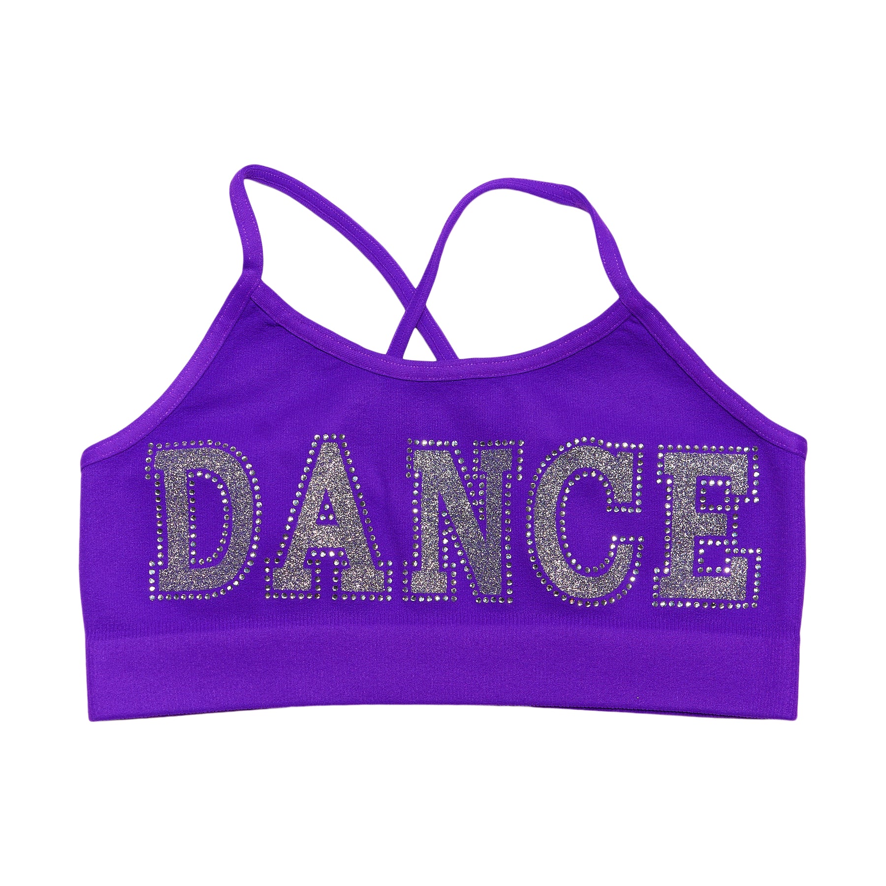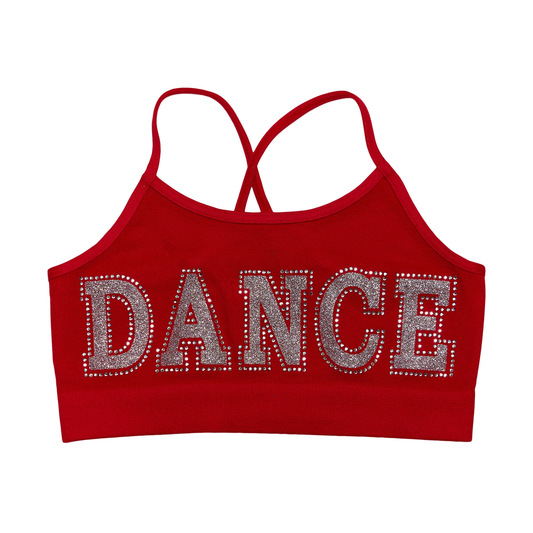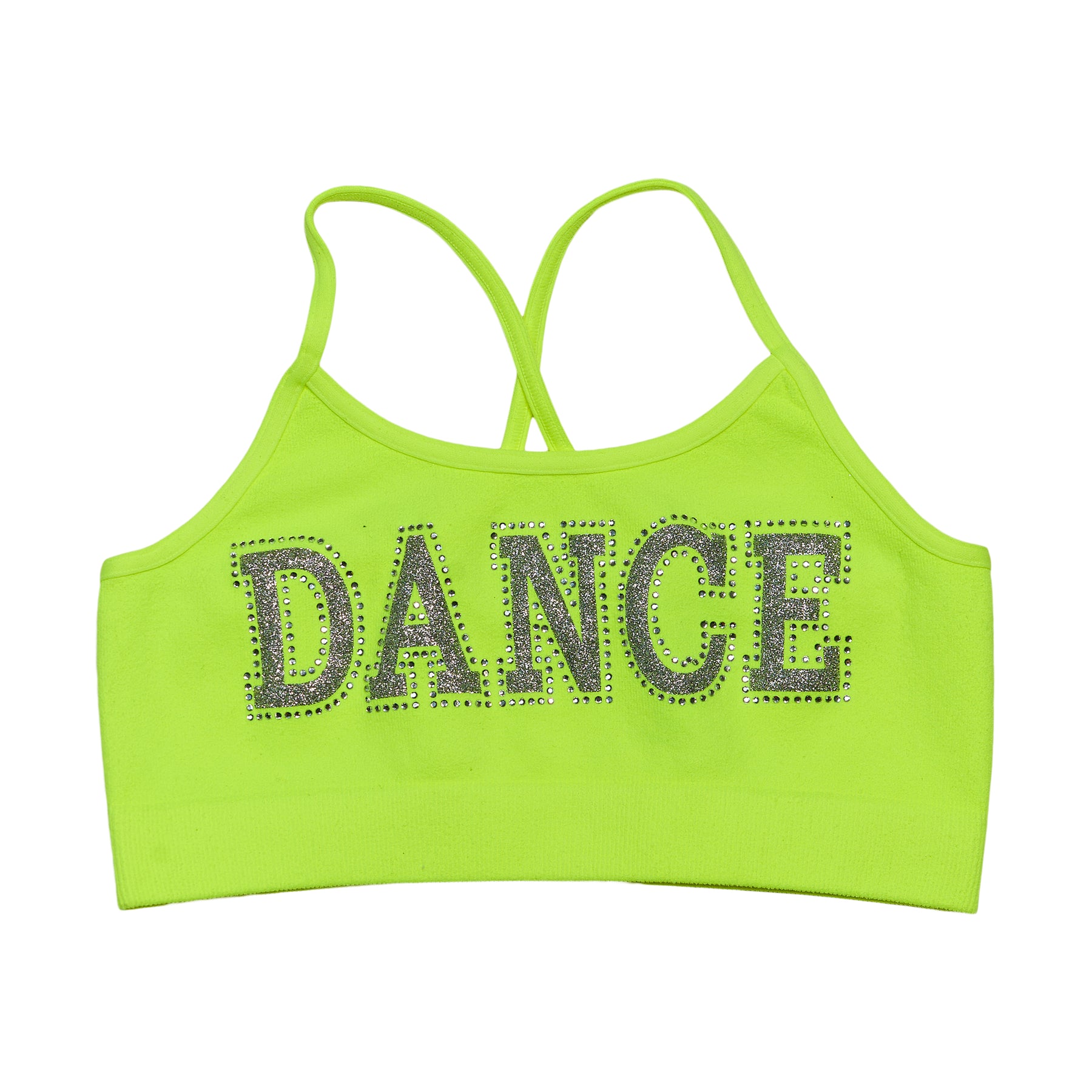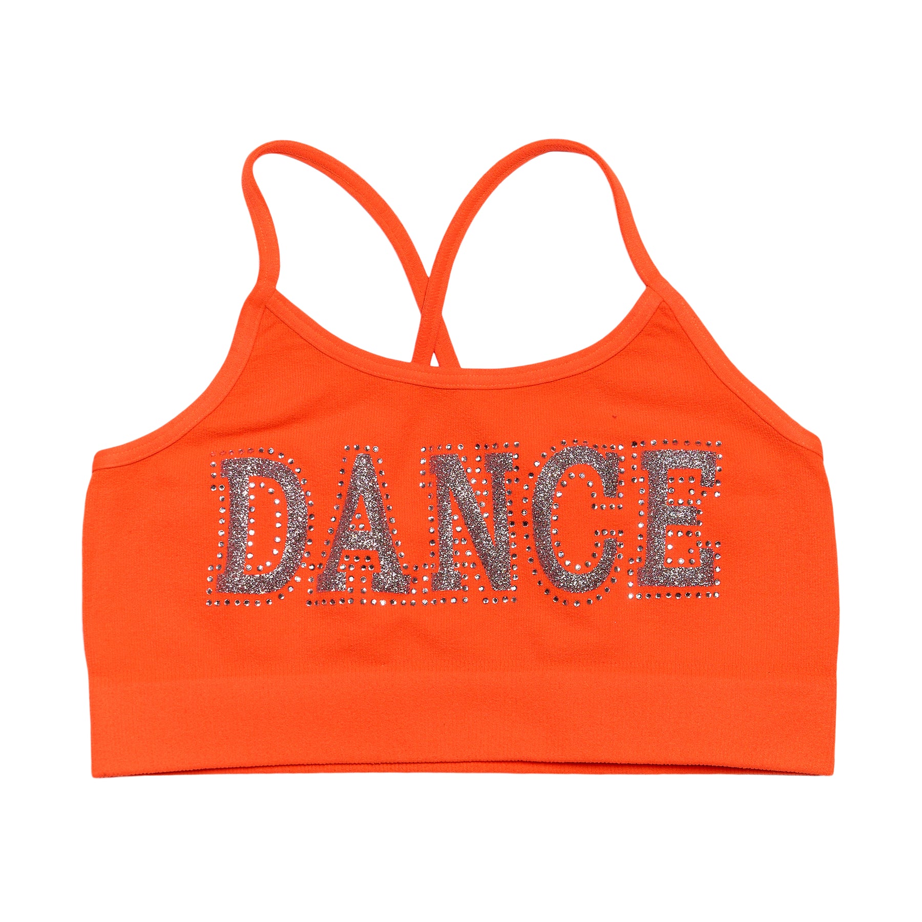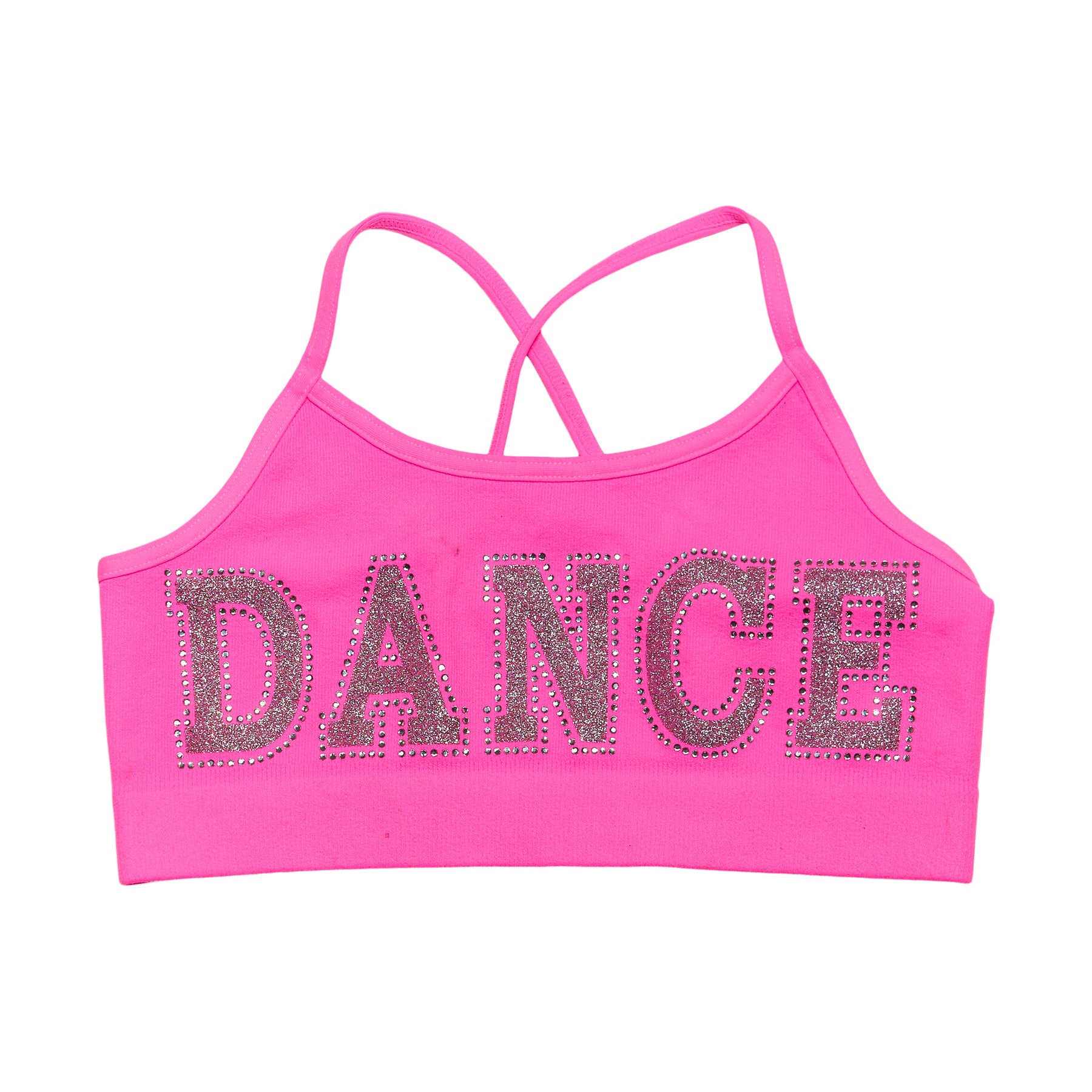 Our "DANCE" Embellished Bra Cami is a "Must Have" to your practice apparel. The perfect amount of dazzle. Pair with our solid or rhinestone boy shorts. Available in a variety of fun, bright colors.