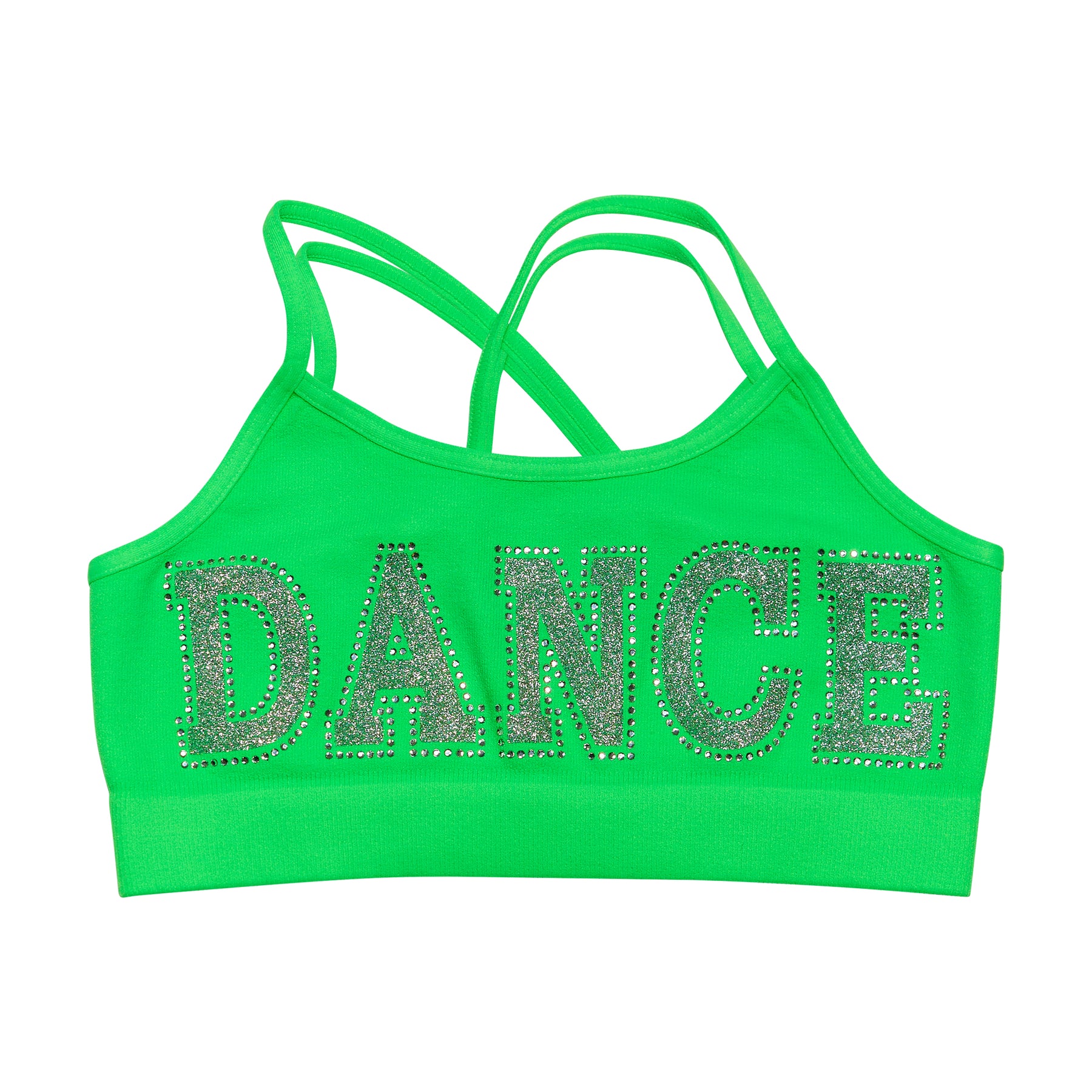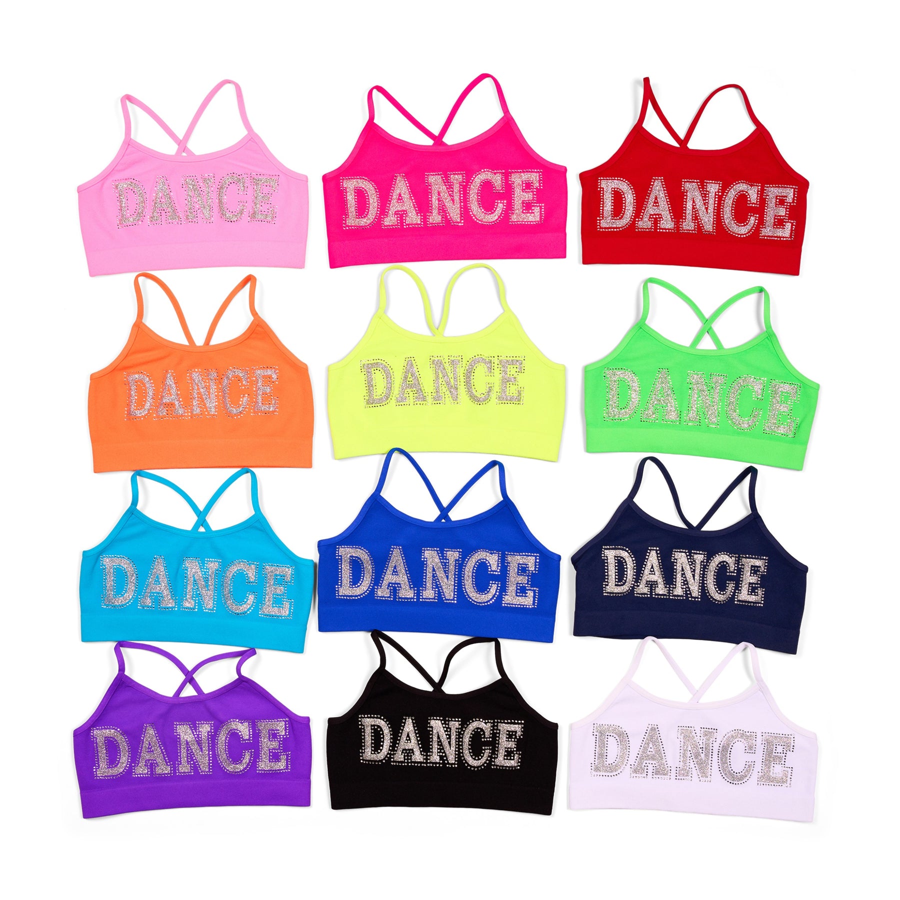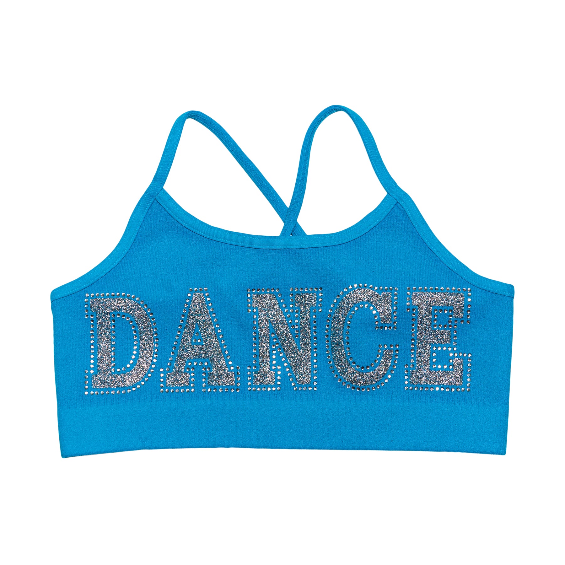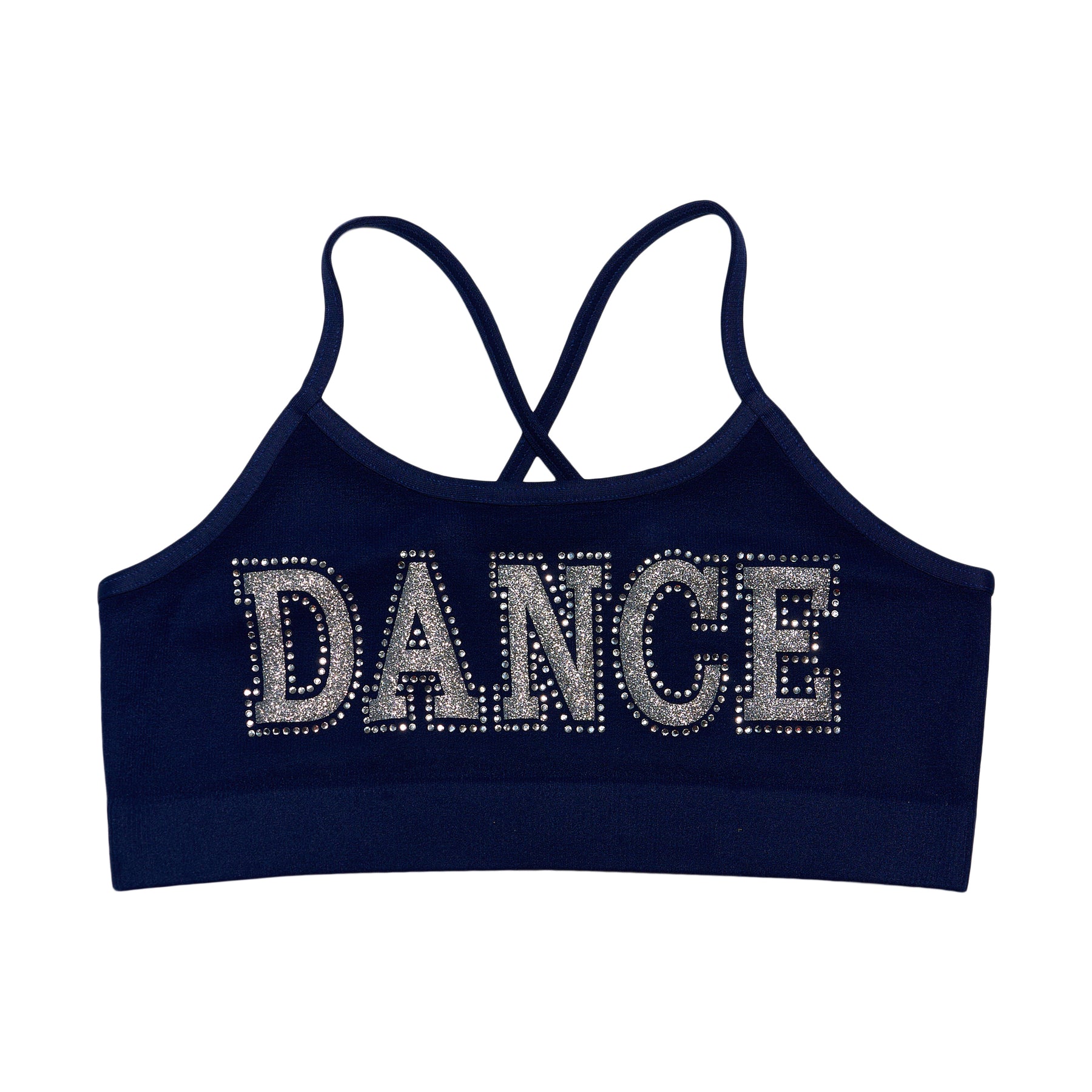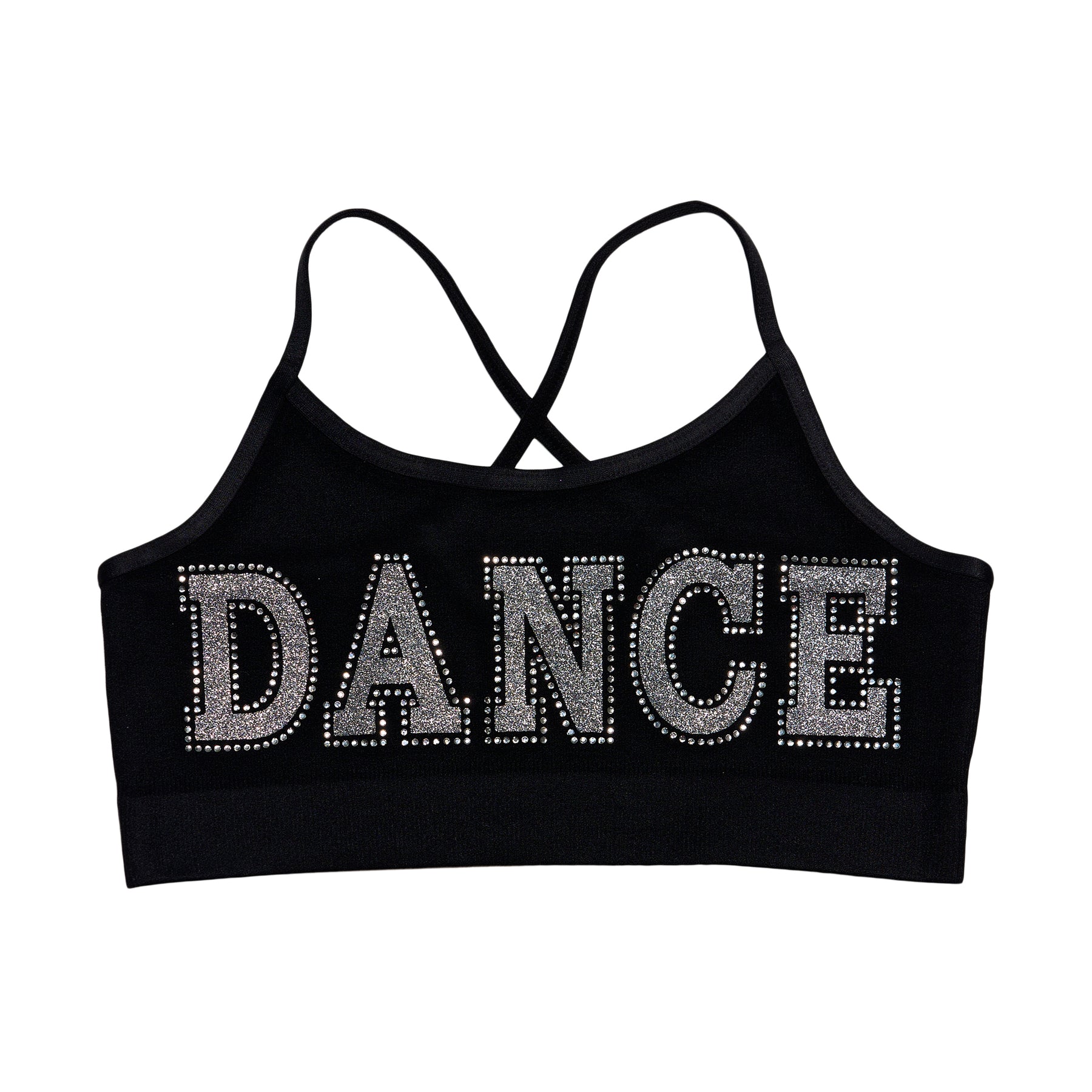 Our "DANCE" Embellished Bra Cami is a "Must Have" to your practice apparel. The perfect amount of dazzle. Pair with our solid or rhinestone boy shorts. Available in a variety of fun, bright colors.