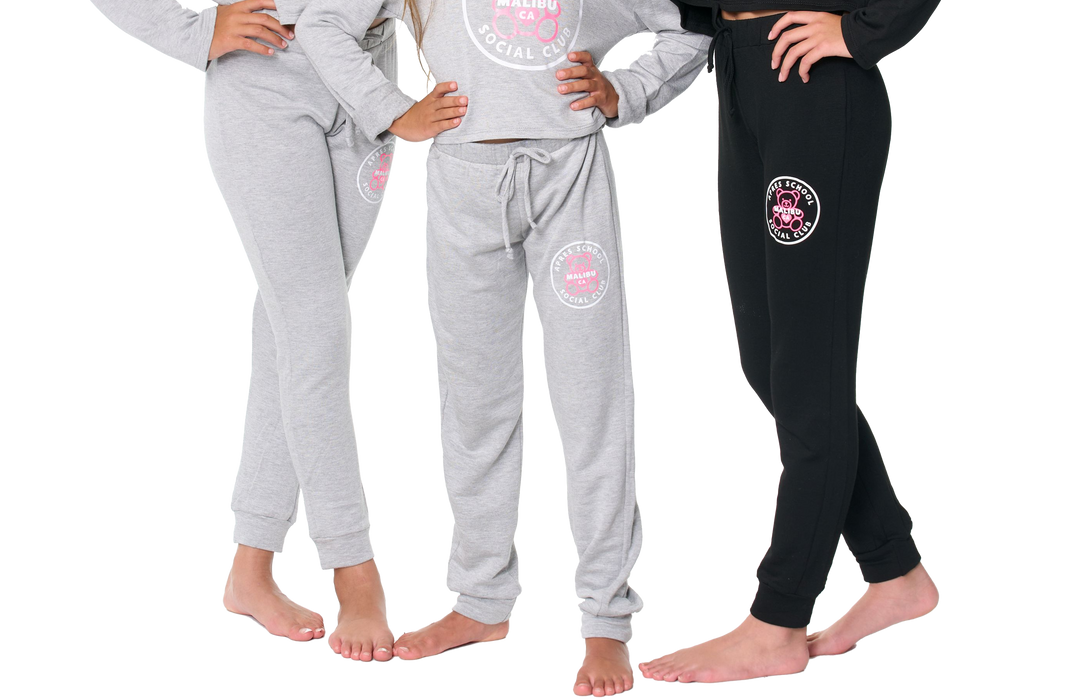 Girl's (8-14) Butter Fleece Sweatpants with "APRES SCHOOL SOCIAL CLUB TEDDY BEAR" Screen