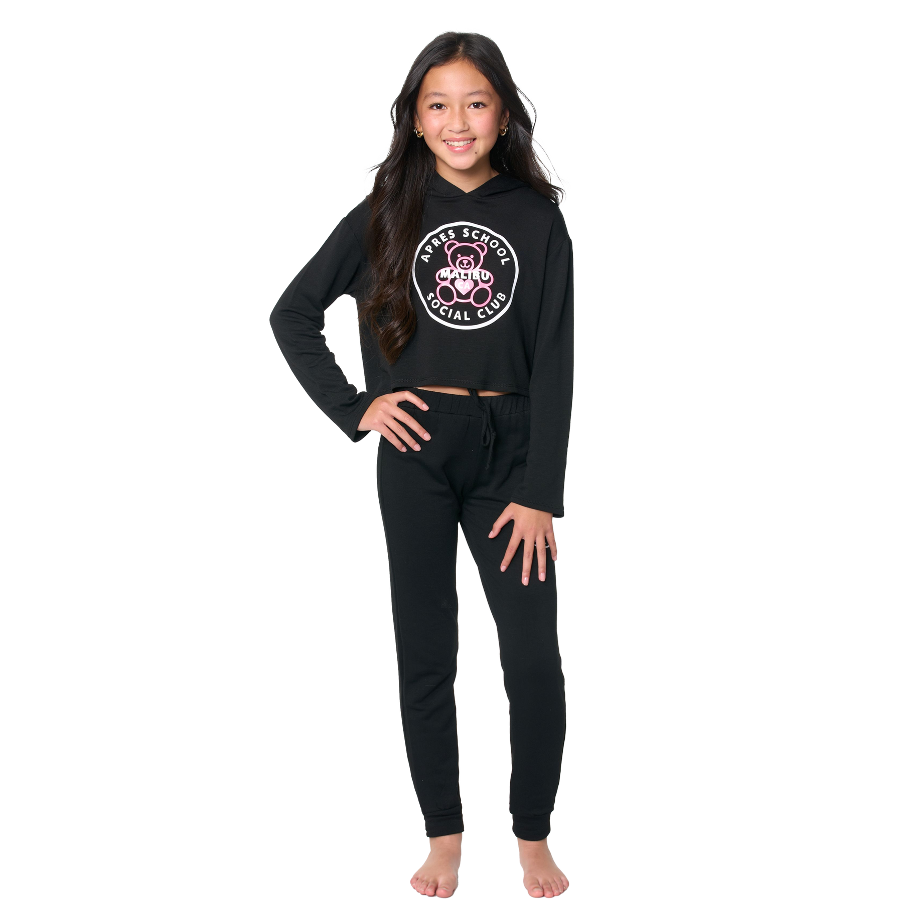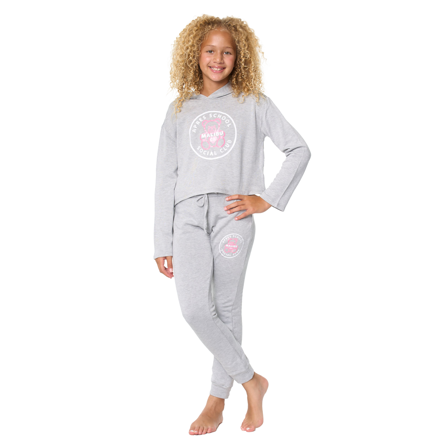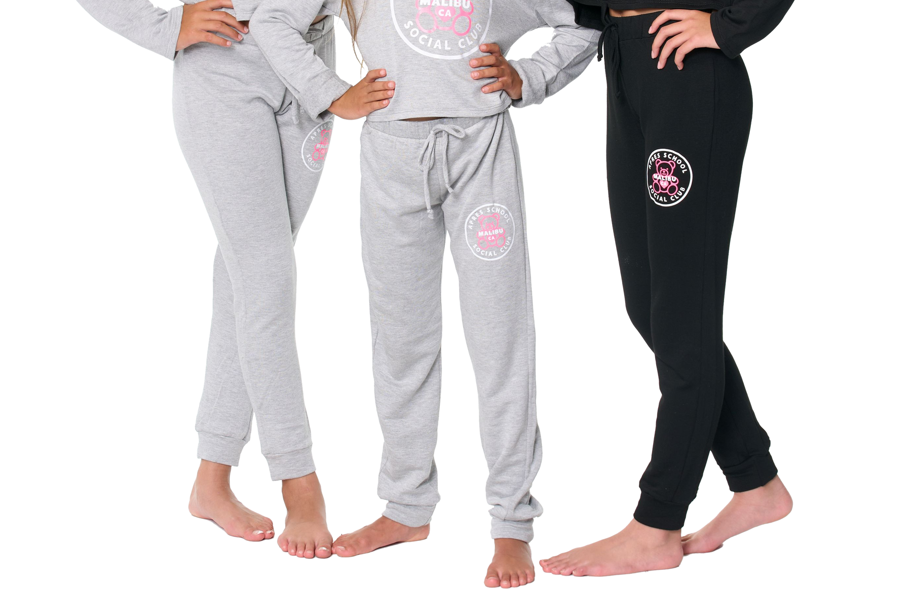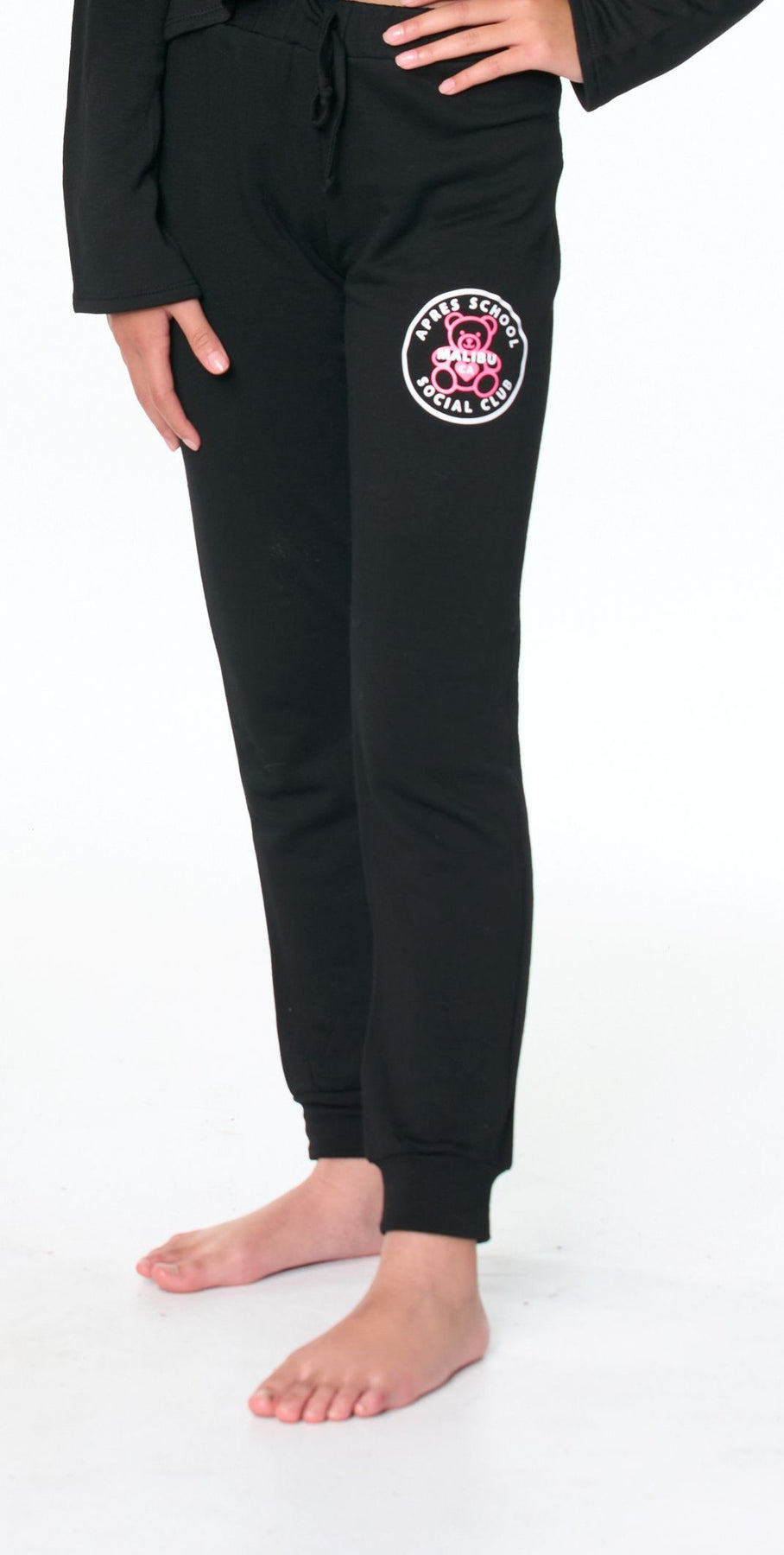 Stay warm & cozy in these butter fleece Sweatpants with a "APRES SCHOOL SOCIAL CLUB TEDDY BEAR" Screen
