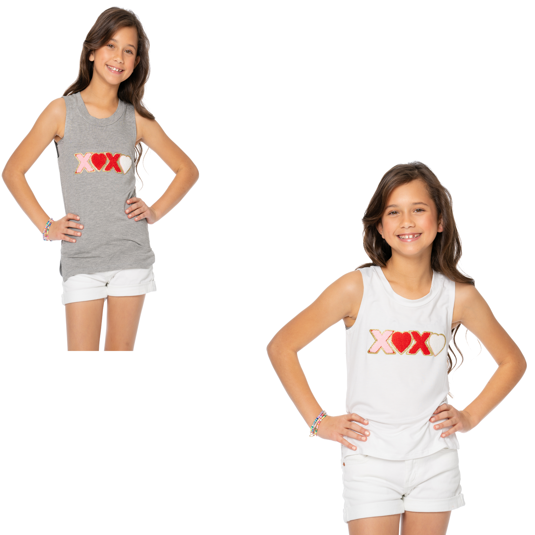This Sleeveless T-Shirt is one of our best-selling T-shirt bodies and perfect for Valentines day! Embellished with our "XOXO" Glitter Patch.