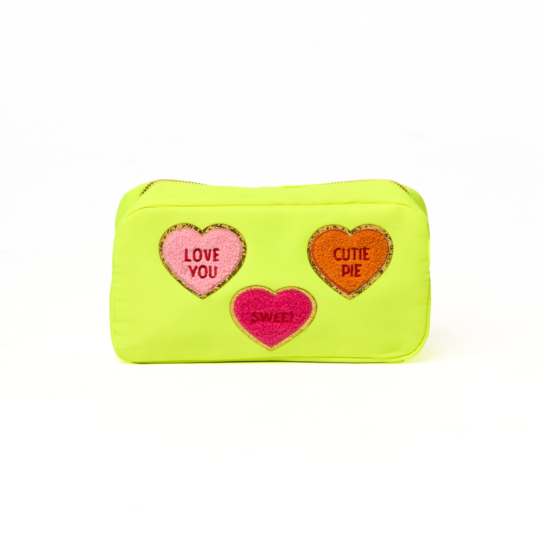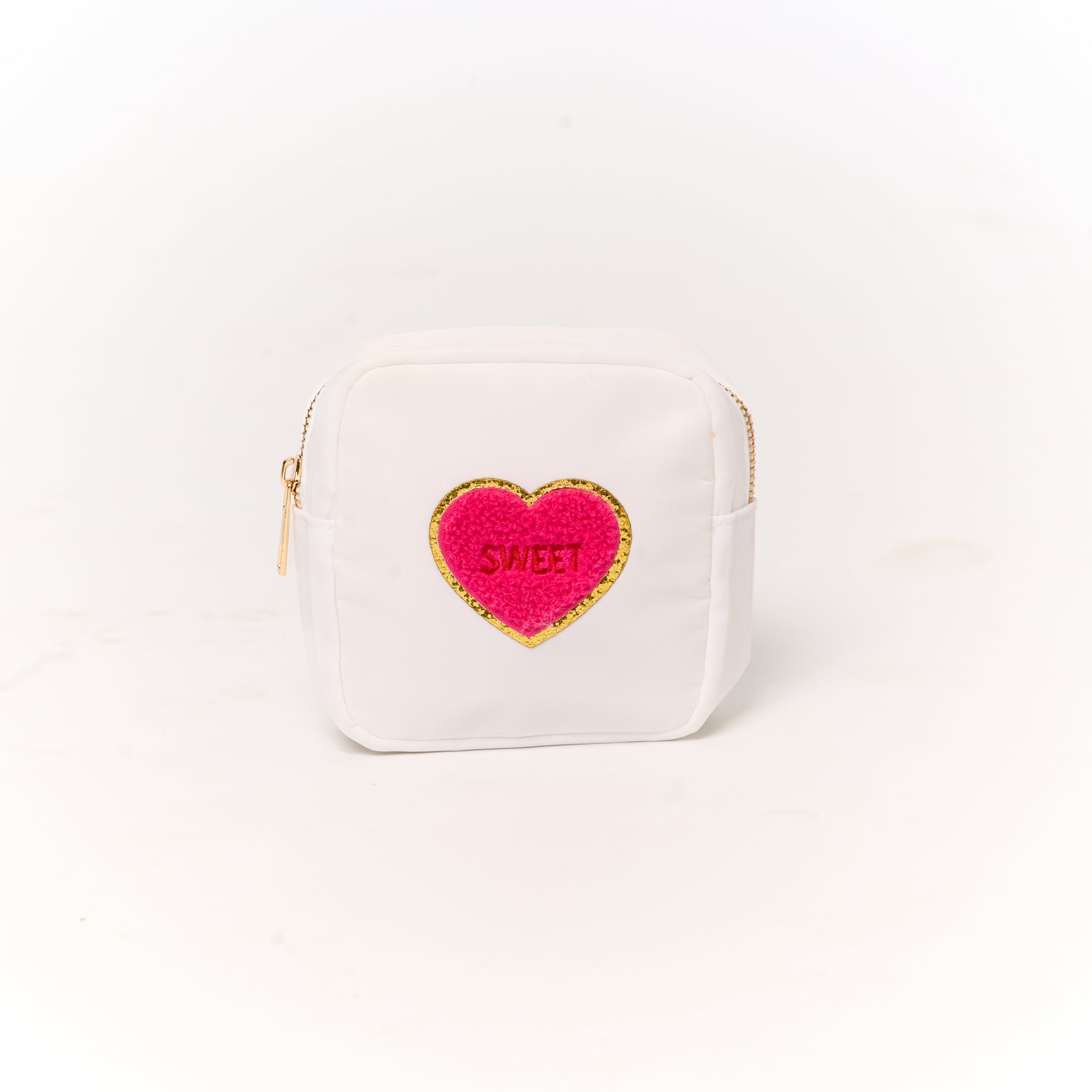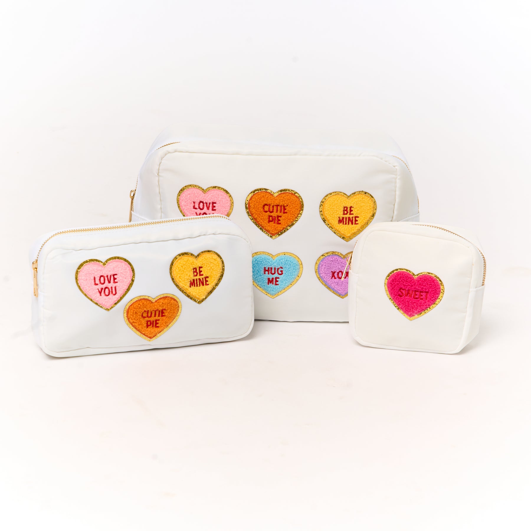 Our Nylon Pouches with Heart Conversation Patches, are the perfect chic bag to add to your girls' accessories. The design is timeless, which combines style and functionality seamlessly. Crafted from durable and easy-to-clean material, it’s perfect for organizing all girls' essentials, whether at home or on the go.