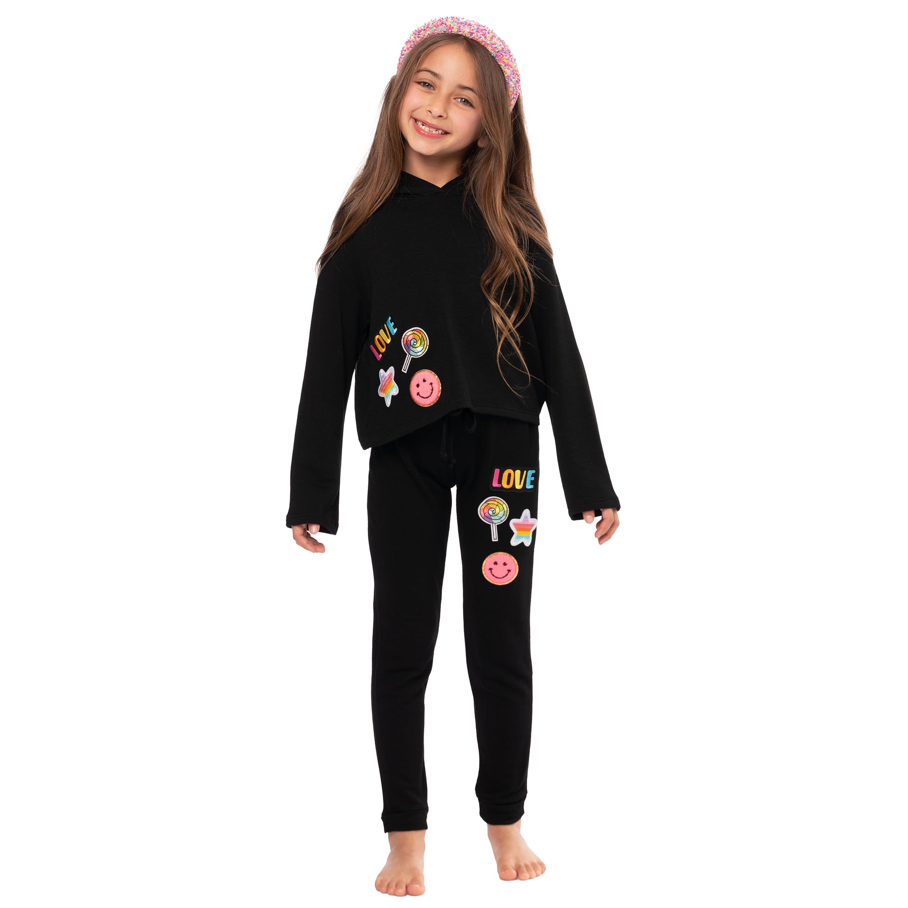 Stay warm & cozy in this butter fleece Hoodie Sweatshirt with adorable assorted Patches.