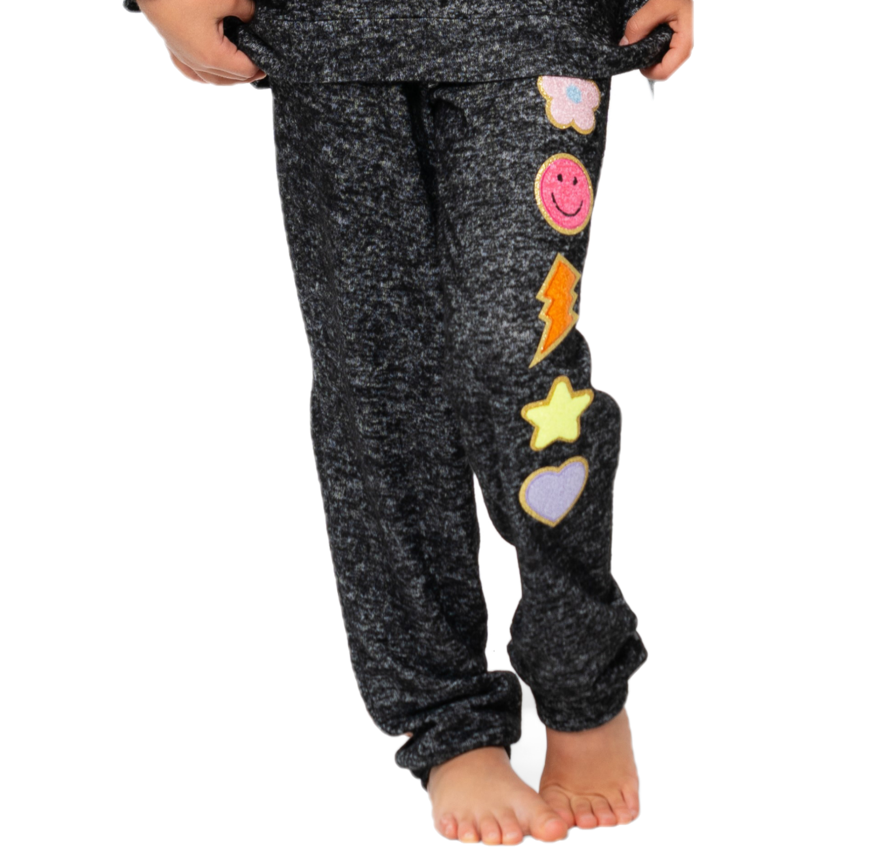 Back by popular demand! This Hacci Sweatpants is one of our best-selling bodies and perfect for cooler days! And these have Fun Glitter Chenille Patches to add just the right amount of sparkle.