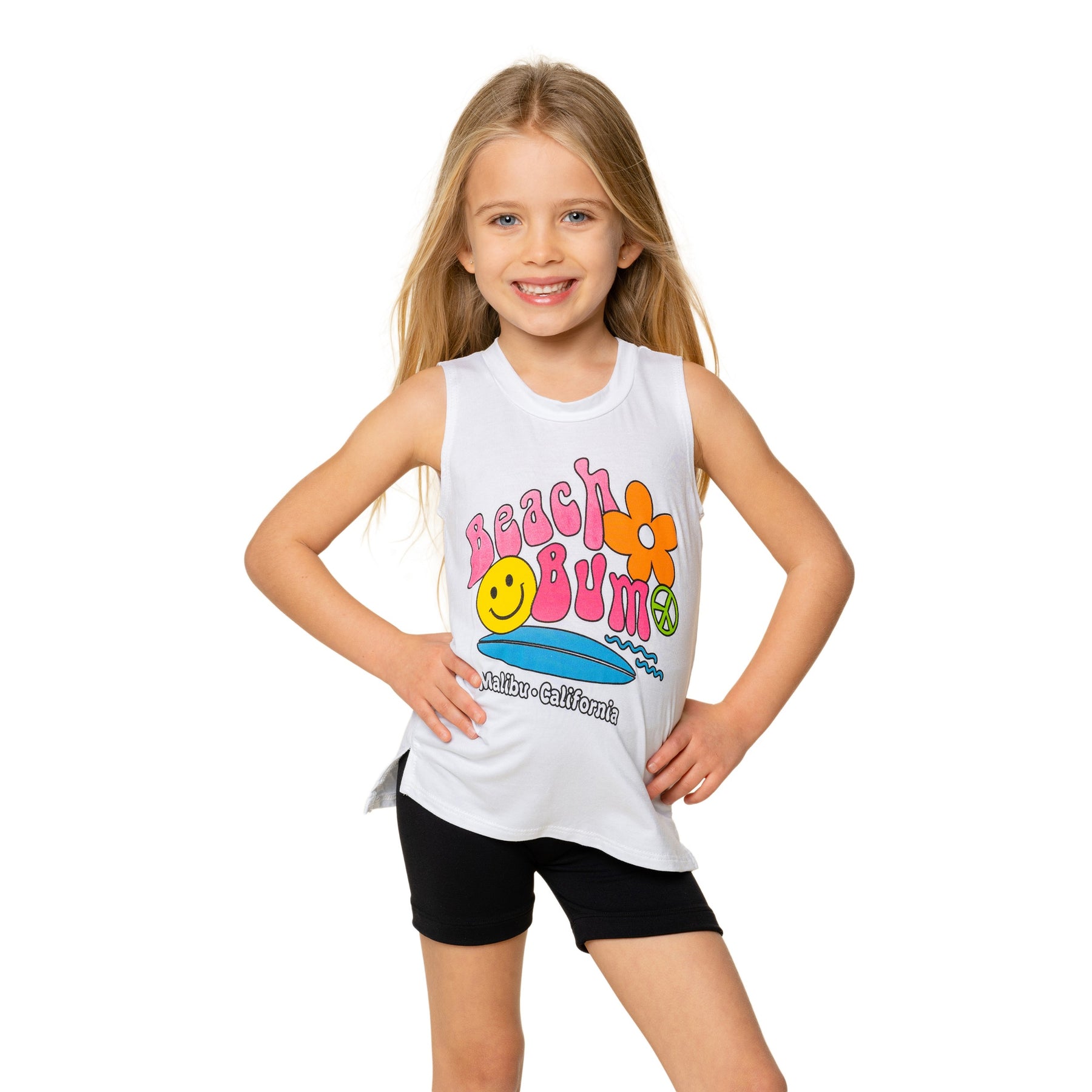 This Sleeveless T-Shirt is one of our best-selling T-shirt bodies and perfect for warmer days! Embellished with our Beach Bum Screen.