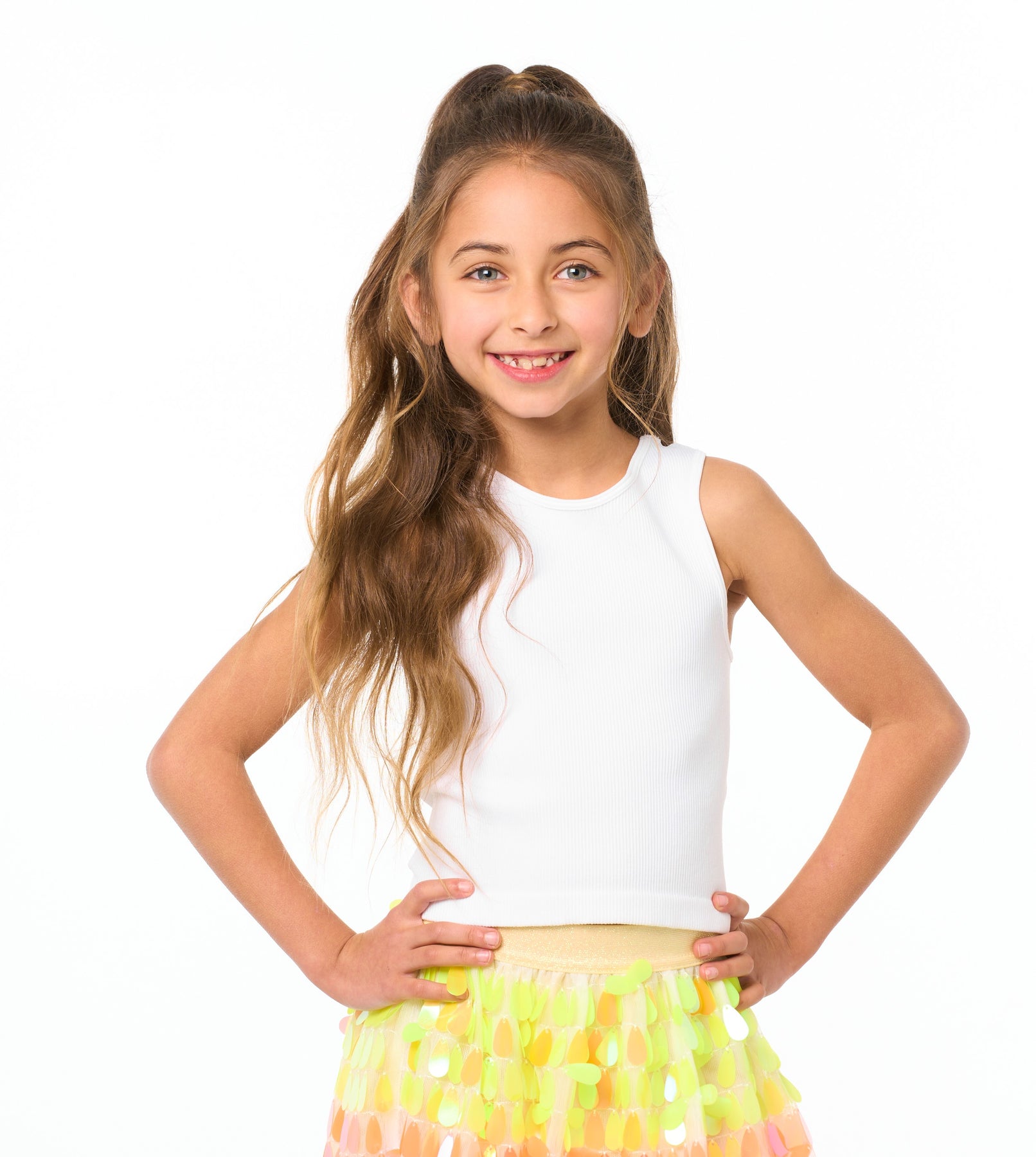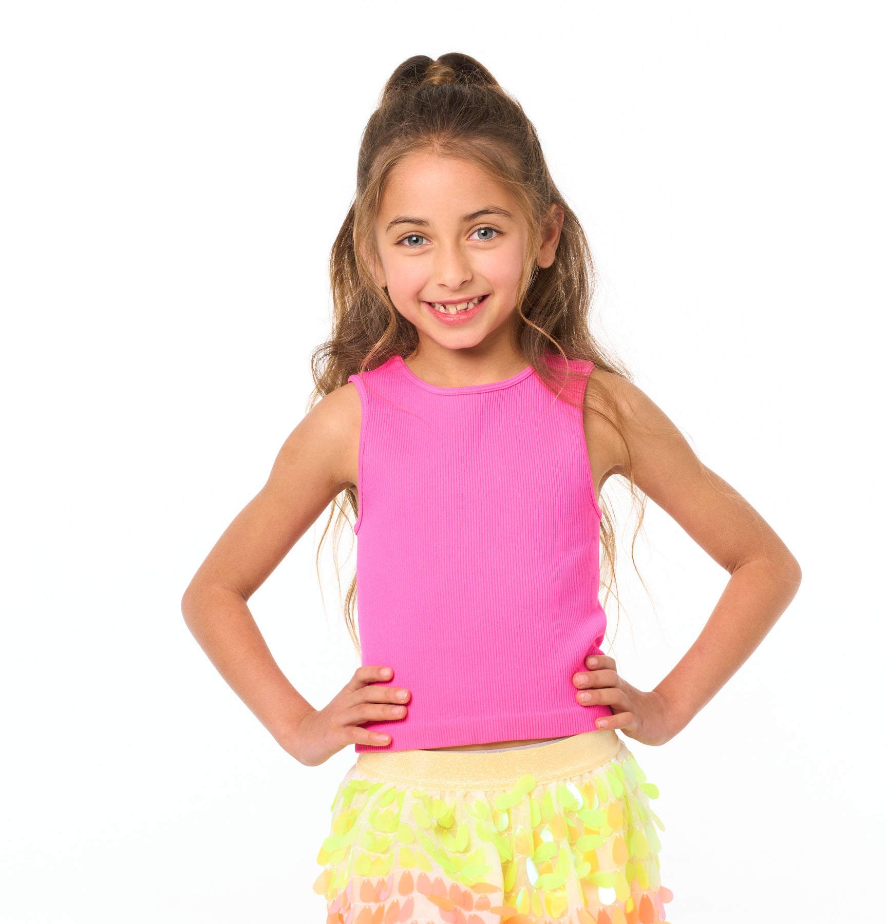 The absolute perfect top for little girls all year round! This sleeveless seamless top goes with everything, from skirts & shorts to denim & leggings.
