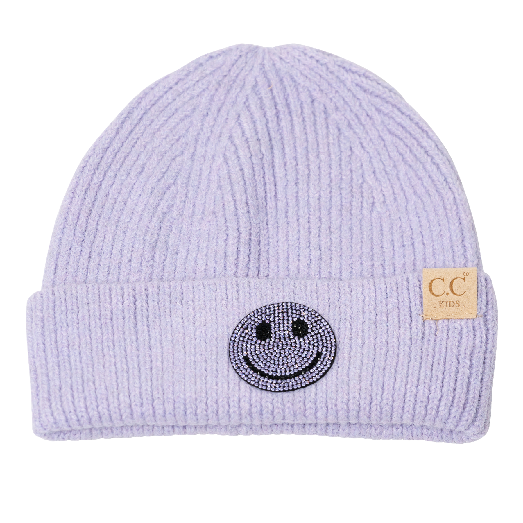 These cozy beanies are embellished with a rhinestone smiley face patch for the cutest detail while staying warm and cozy on colder days!