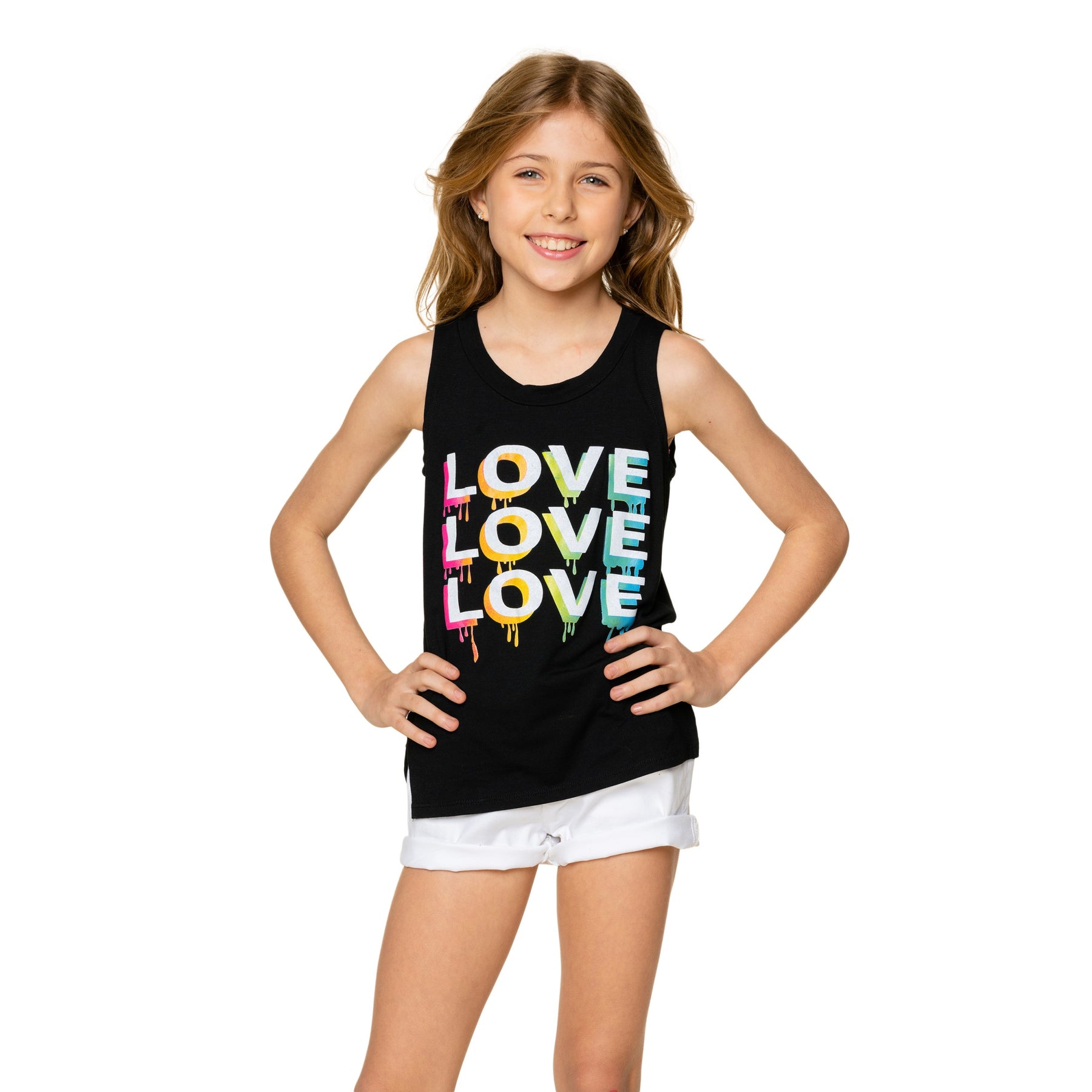 This Sleeveless T-Shirt is one of our best-selling T-shirt bodies and perfect for warmer days! Embellished with our LOVE LOVE LOVE screen.