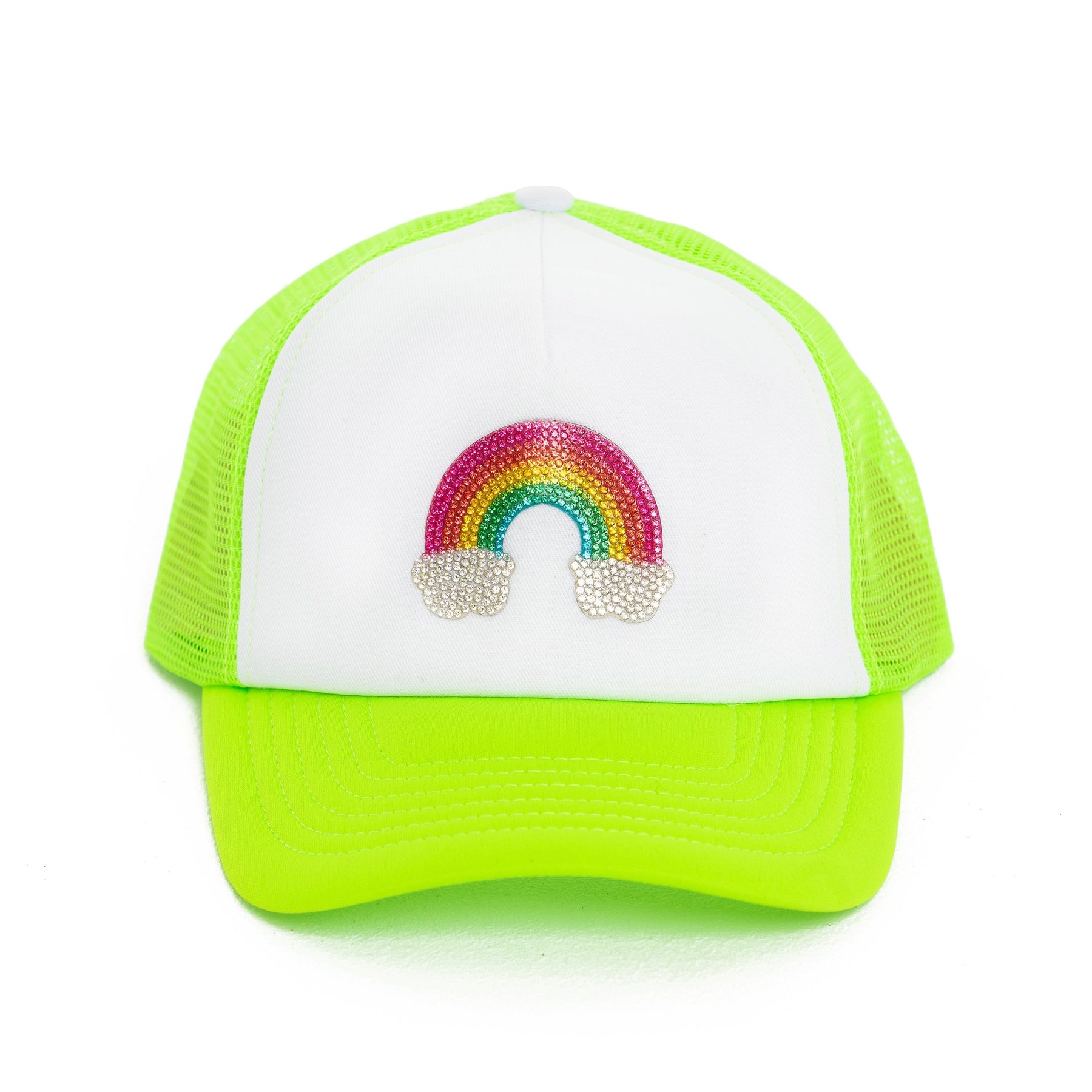 OMG the perfect Trucker Hat! This adorable Trucker Hat with our "Rainbow" Embellishment is so cute for those Summer Days!