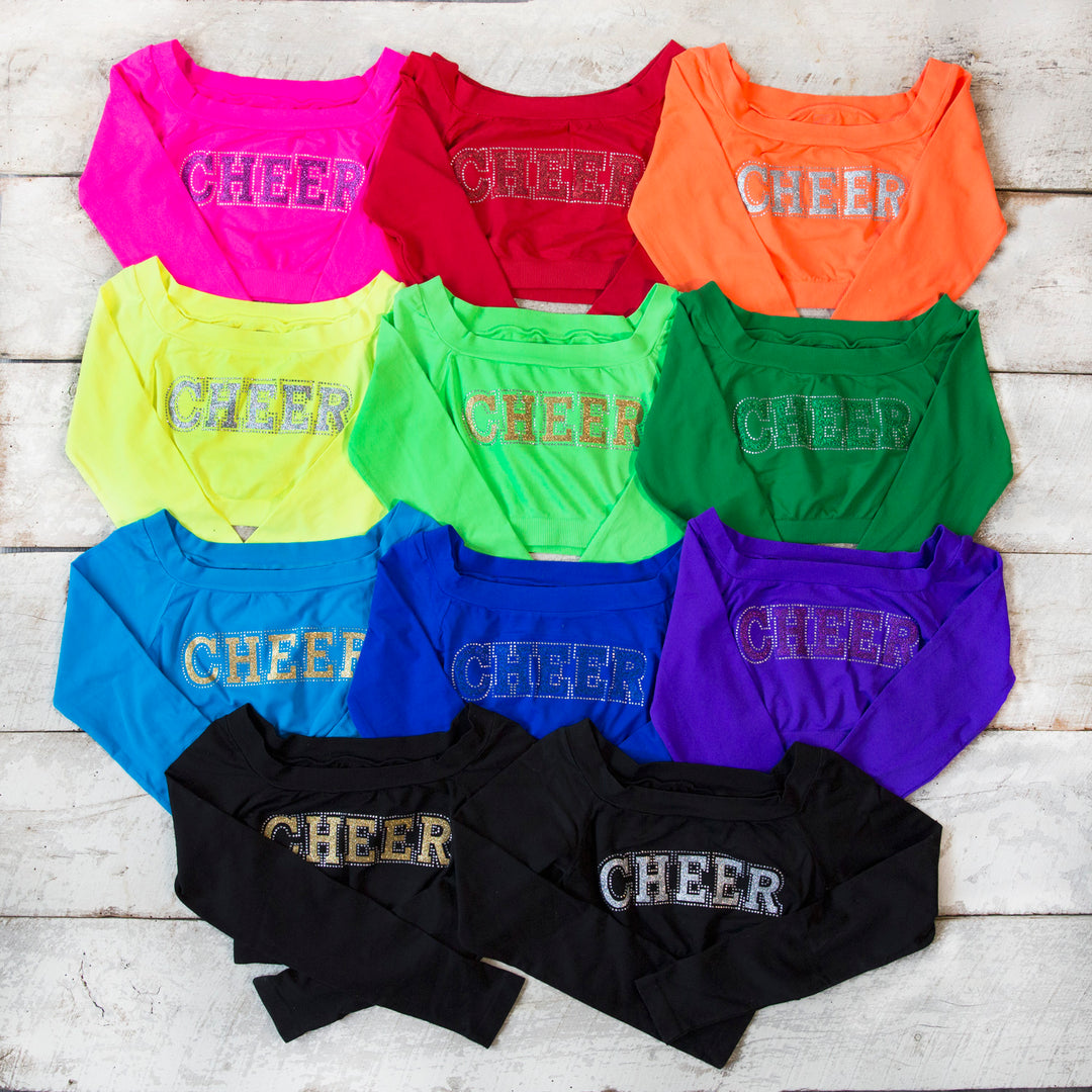 Junior's "CHEER" Long Sleeve Cropped Tops